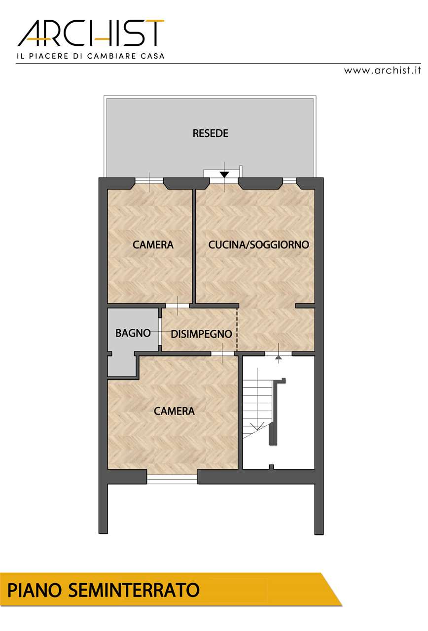 La palazzina è oggetto di una ristrutturazione completa, che garantirà impianti nuovi e finiture moderne, con la possibilità di personalizzare gli interni secondo i gusti. L'appartamento è composto da un ingresso che si apre sulla zona giorno con angolo cottura, da cui si accede al resede tergale esclusiva, perfetto per momenti di relax all’aperto; un comodo disimpegno conduce alla camera matrimoniale, alla camerina con accesso alla resede e al bagno con doccia. Completa la proprietà un pratico resede frontale esclusivo ad uso parcheggio bici e motorini.