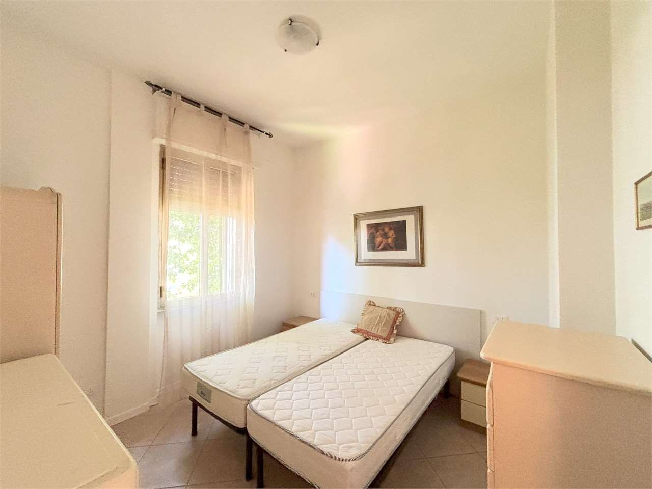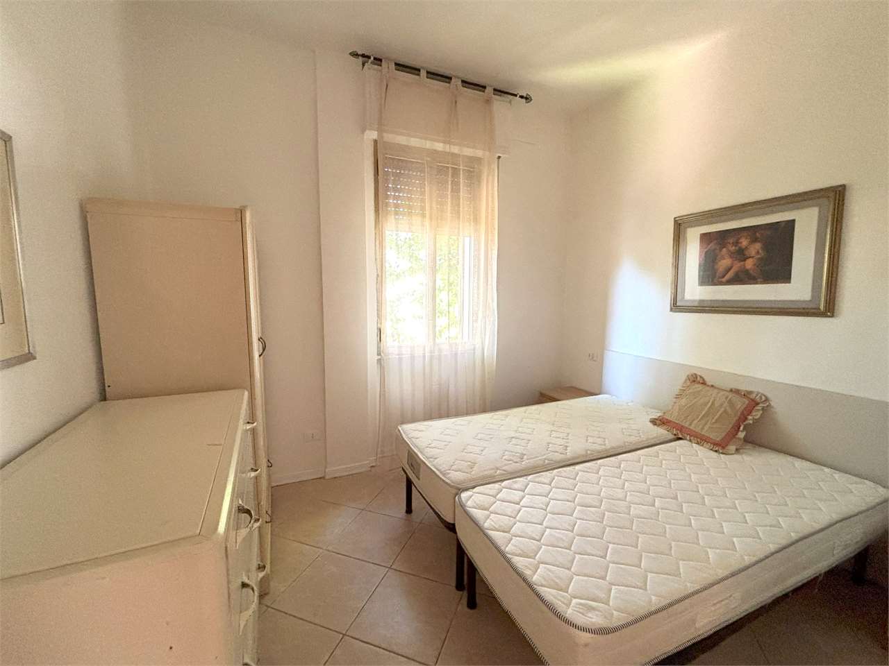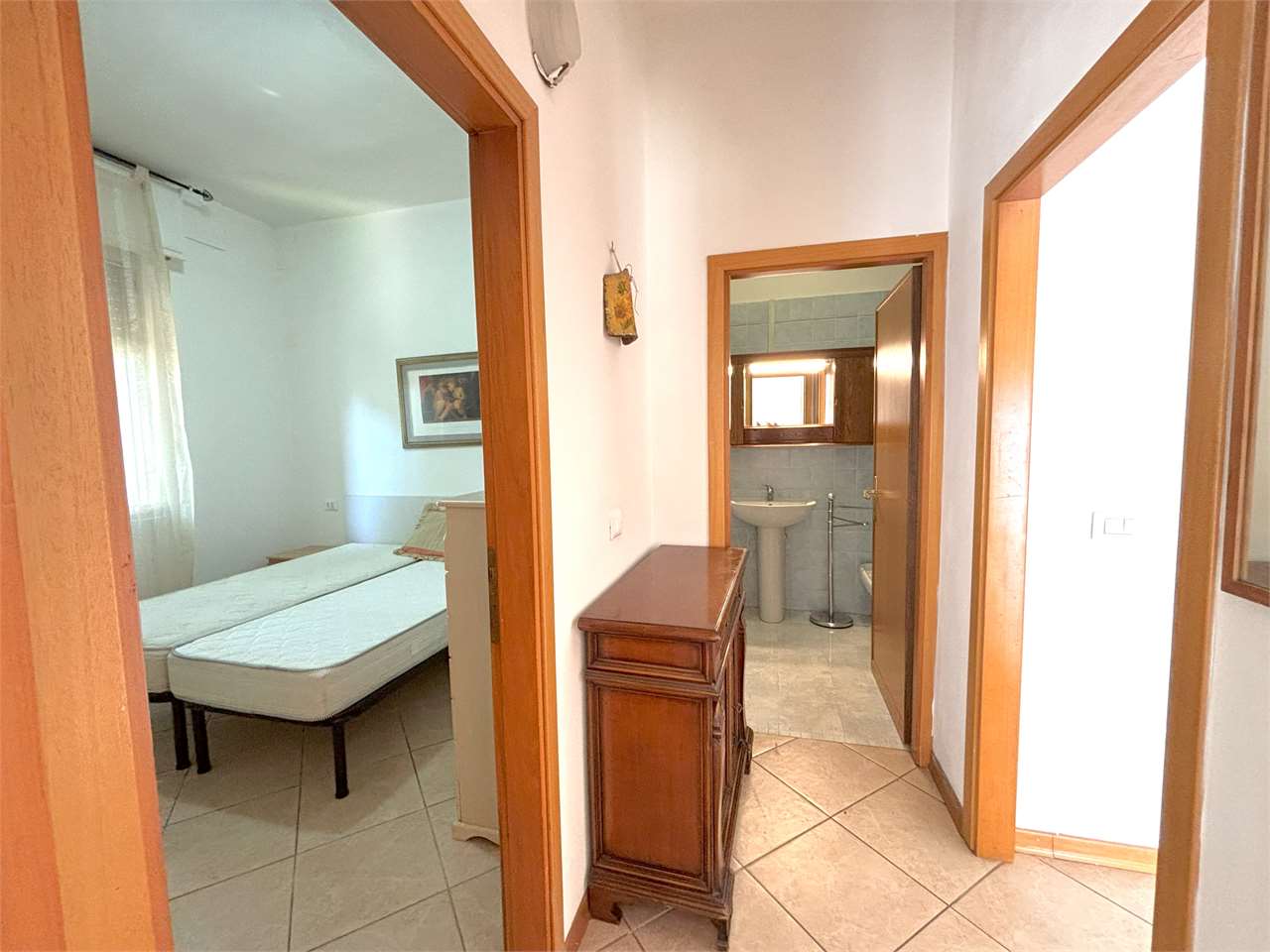 Ben separate dal disimpegno, che ospita anche il bagno con doccia, la camera matrimoniale e la camera doppia assicurano ad ogni componente della famiglia il proprio spazio e la propria privacy.
