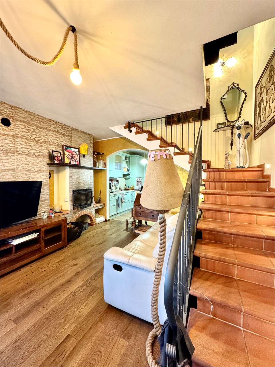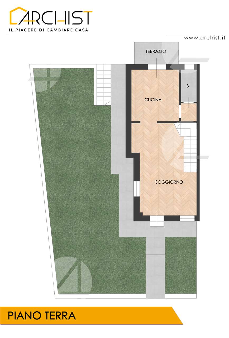 ? Piano Terra: accogliente zona giorno con luminoso soggiorno, cucina abitabile con accesso al terrazzo, bagno di servizio e ampio giardino privato di circa 110 mq, perfetto per cene all’aperto o momenti di relax.