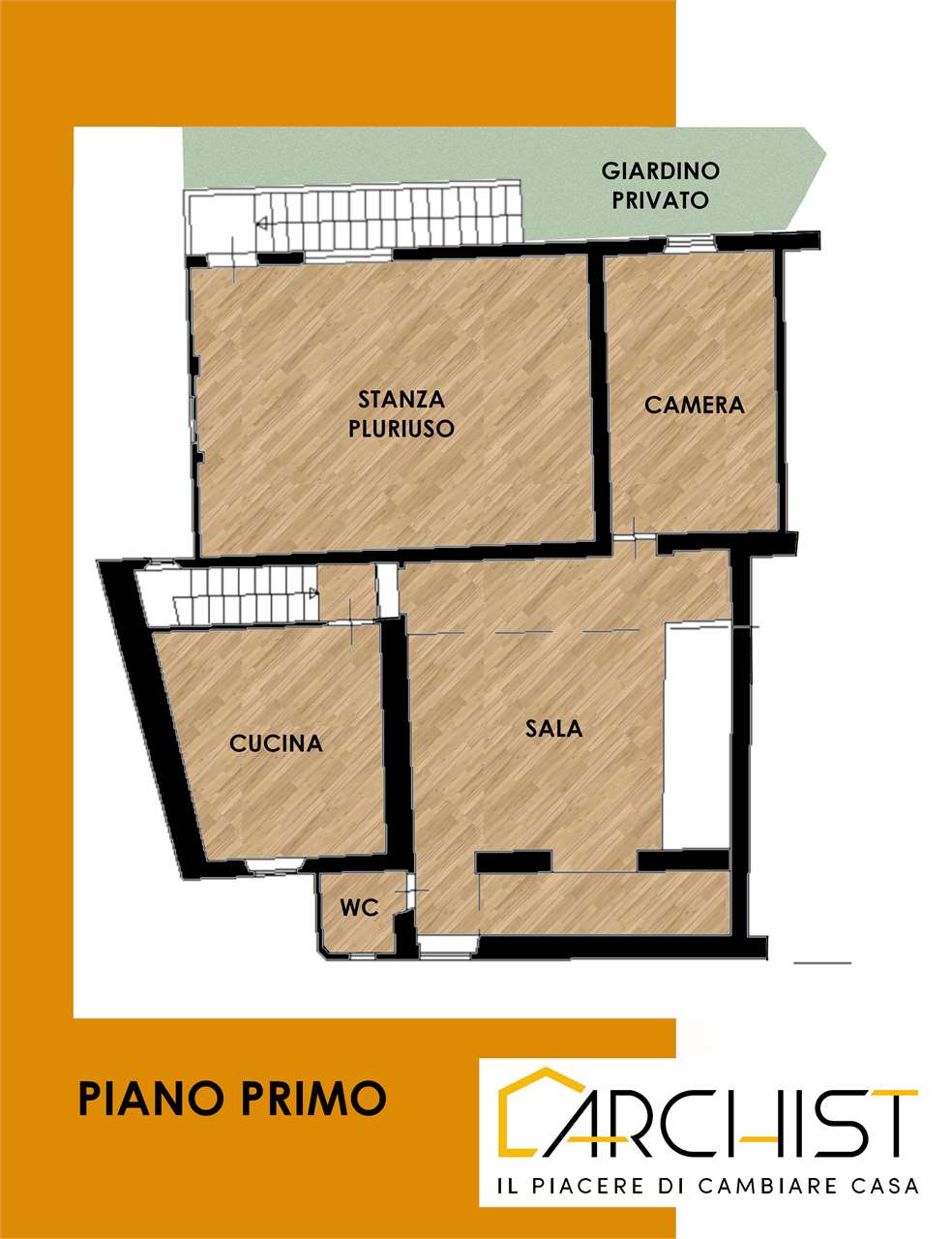 La casa si compone al piano terra di ingresso e stanza pluriuso, al primo piano da 4 ampi vani nei quali sarà possibile ricavare un soggiorno con angolo cottura, 3 camere e bagno.