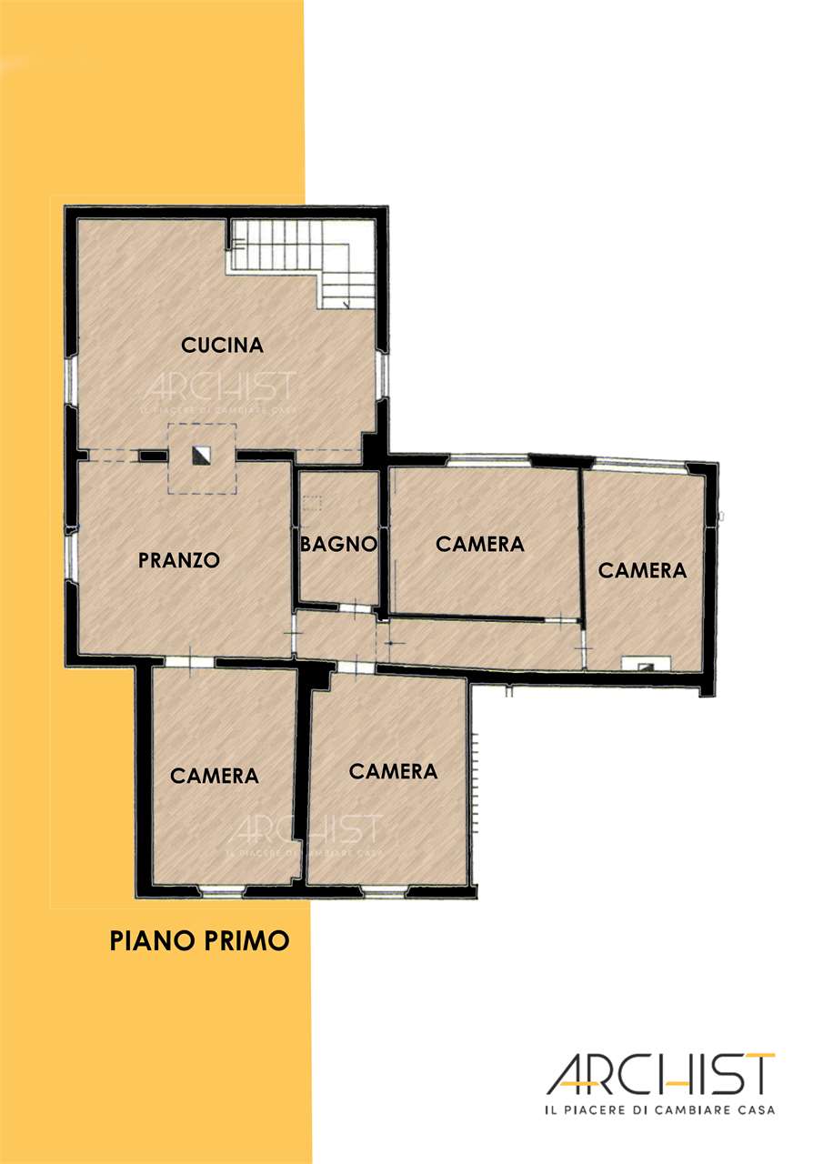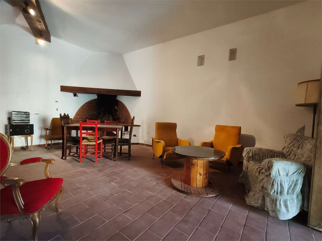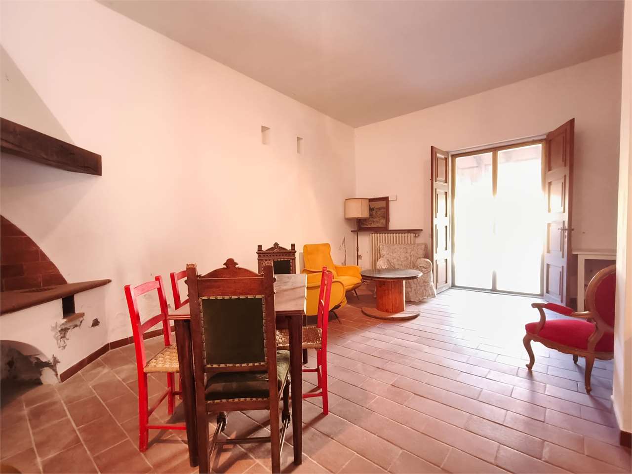 L'appartamento si sviluppa al primo piano ed è indipendentemente accessibile attraverso ampia sala posta al piano terra e dall'antistante portico in muratura.