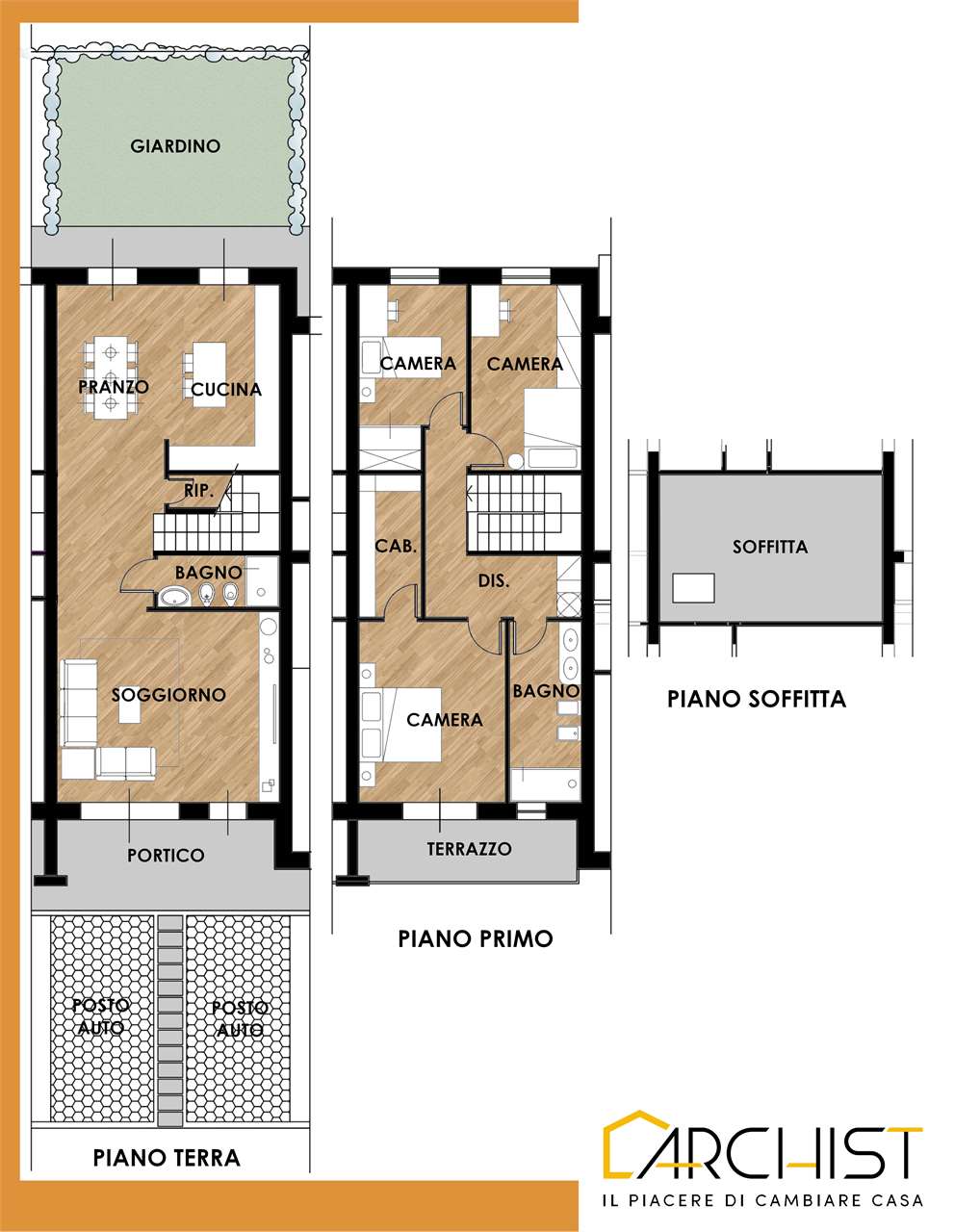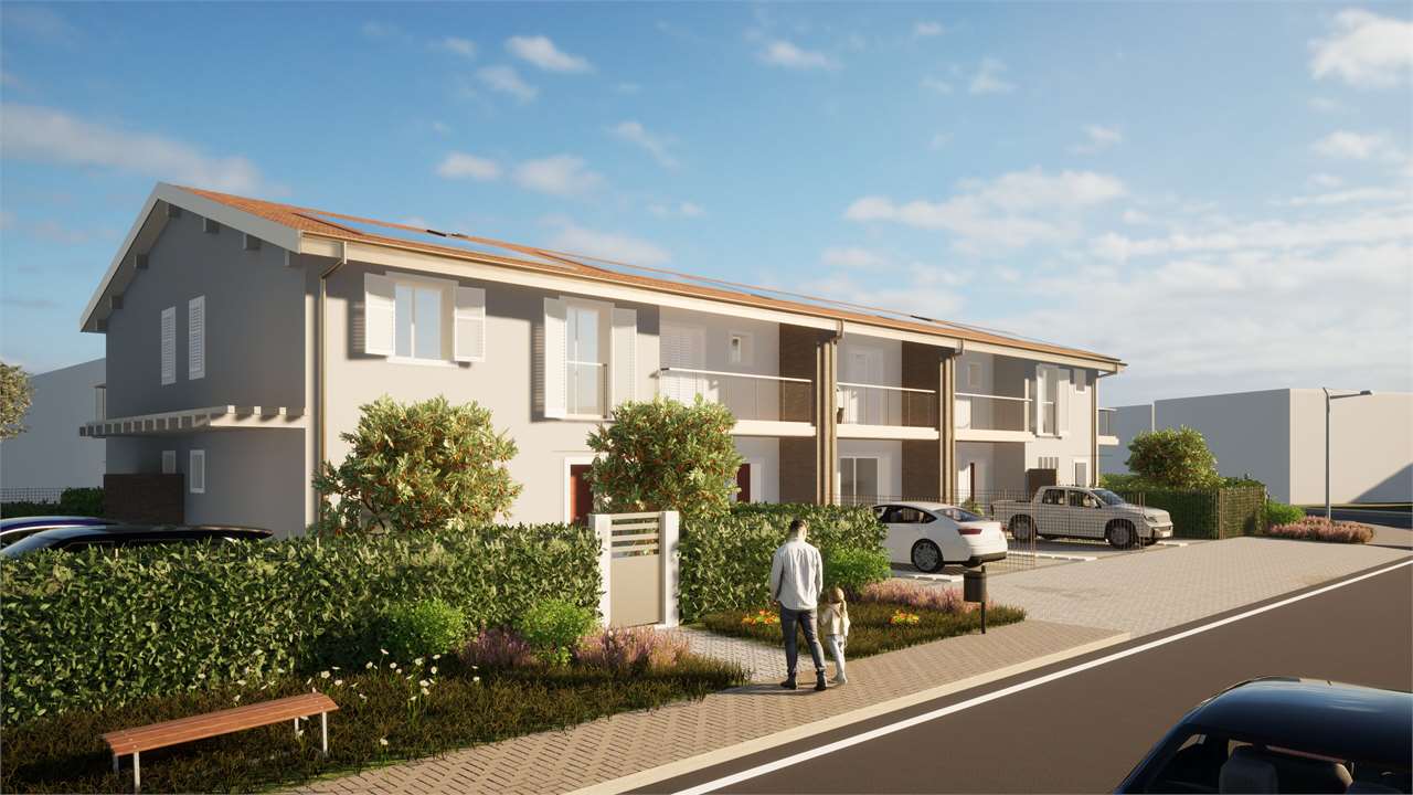Nuova costruzione con consegna Aprile 2026 - ARCHIST propone in esclusiva villetta a schiera di oltre 150 mq. sviluppata su due piani e composta al piano terra da ampio soggiorno, sala da pranzo con angolo cottura, bagno con antibagno e ripostiglio, al piano primo da una camera matrimoniale con cabina armadio, da due camere medie, ripostiglio e bagno, oltre balcone frontale e piccola soffitta raggiungibile tramite botola a soffitto con scala retrattile.