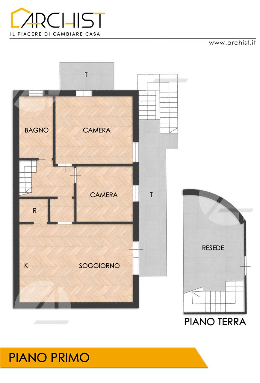 L’immobile gode di accesso indipendente tramite un resede privato di circa 17 mq, ideale per il ricovero di biciclette o come comodo spazio di accoglienza.